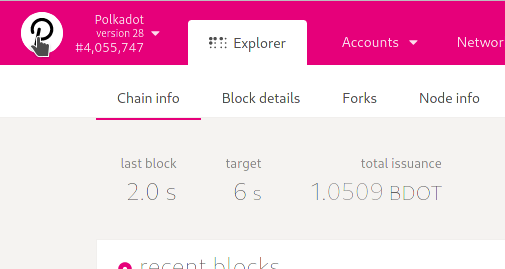 Once you've opened the app in your browser, you should see it connected to the Polkadot network:
