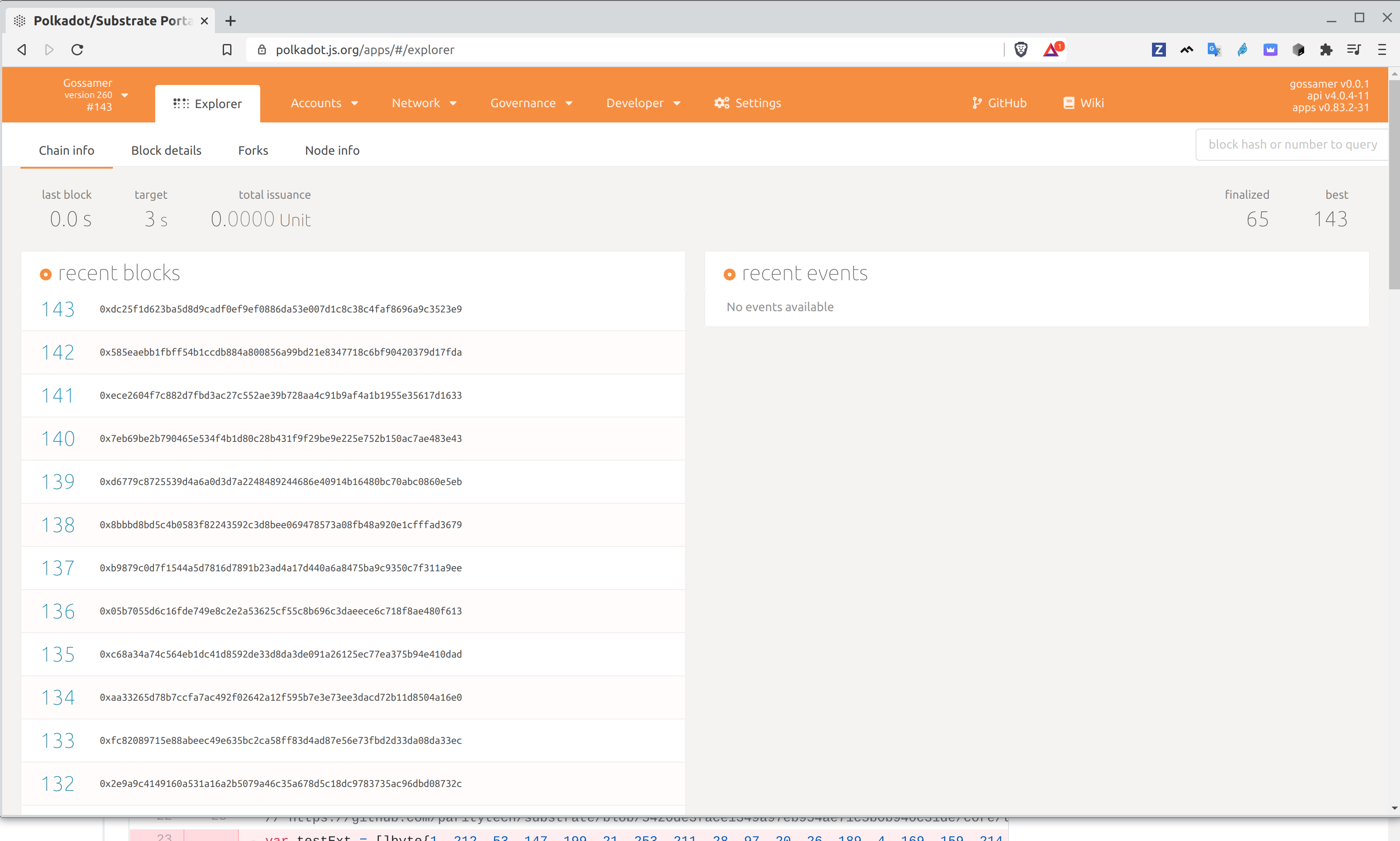 To view your running Gossamer node with a UI, Polkadot has created a handy app, which you can use here: https://polkadot.js.org/apps/